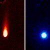 "Mēs aprēķinājām, ka vienas dienas laikā ISON komēta izmet aptuveni 1 miljonu kilogramu oglekļa dioksīda gāzes un 54,4 miljonus kilogramu putekļu," teica Kerijs Lise no Džona Hopkinsa Universitātes Pielietojamās fizikas laboratorijas. "Agrākie novērojumi, kas tika veikti ar Habla teleskopu, Swift gamma staru observatoriju un Deep Impact zondi, ļāva noteikt kopējās gāzu emisijas augšējās robežas. Pateicoties Spitzer teleskopam, mēs konkrēti zinām, ka komētas aktivitātes pamatā ir gāze."